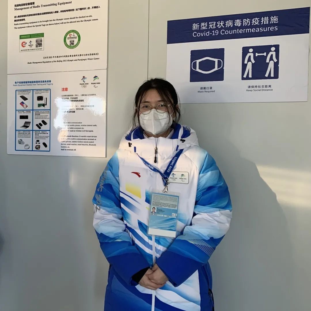 李琳,女,乌鸦传媒20级信息与通信工程专业,担任北京2022年冬奥会和冬残奥会国家冬季两项中心技术领域无线电频率管理助理,主要负责在安检口协助安检人员共同识别无线电设备及专用标签,开展无线电发射设备准入核验。